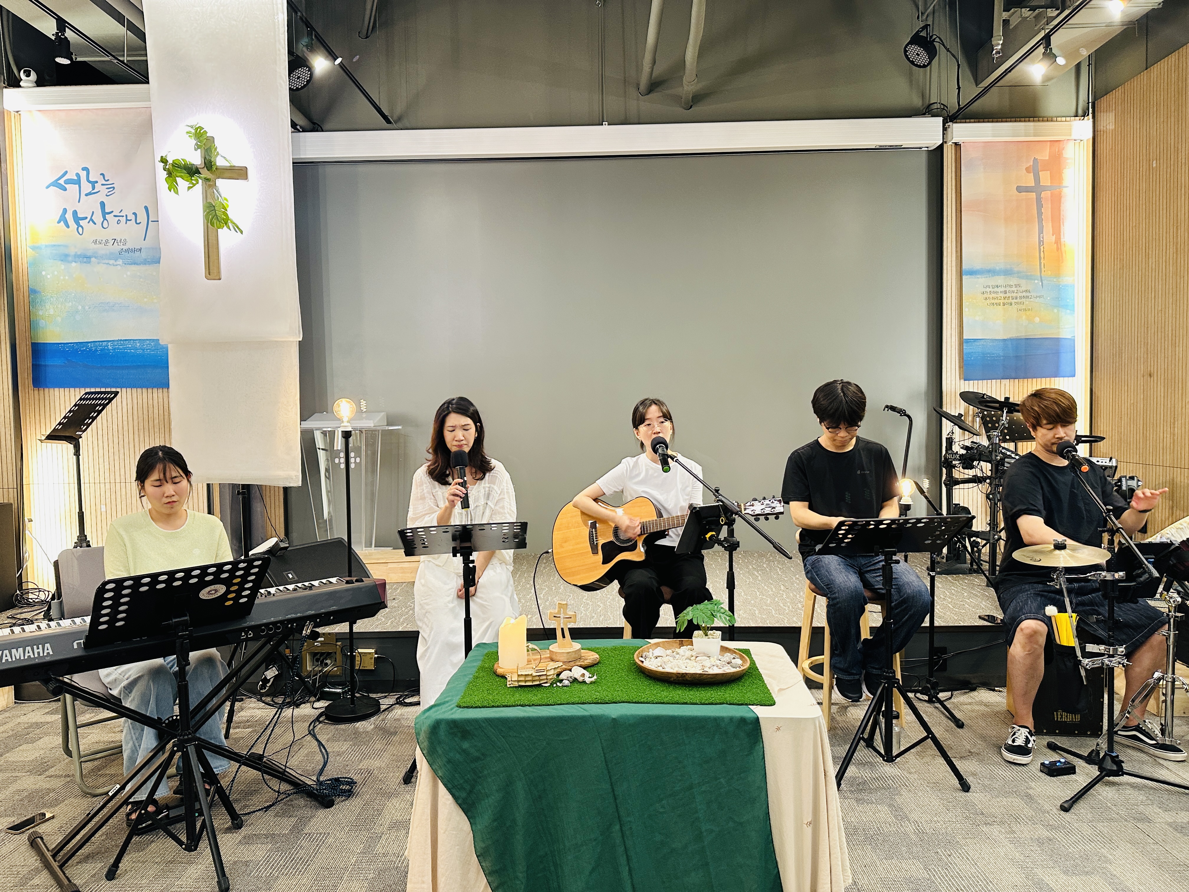 경배와 찬양은 교회력에 따른 창의적인 형태로 진행되고 있습니다. 말씀은 선교사 및 개인들의 삶의 이야기, 시대를 꿰뚫는 선명한 말씀 해석을 통해 살아계신 하나님을 증거합니다. 하나님의 뜻을 따라 하나님의 뜻이 이루어지기를 역동적인 기도, 말씀과 기도를 통해 개인에게 일어난 깨달음과 통찰을 나누는 소그룹시간은 참여자들에게 강력한 공동체의 힘을 경험하게 합니다. 누구에게나 열려 있고, 언제라도 올 수 있는 숲속의 샘물과 예배입니다. 매년 2월과 8월, 공동체 구성원들의 삶의 현장에서 ‘찾아가는 예배’로 모입니다.