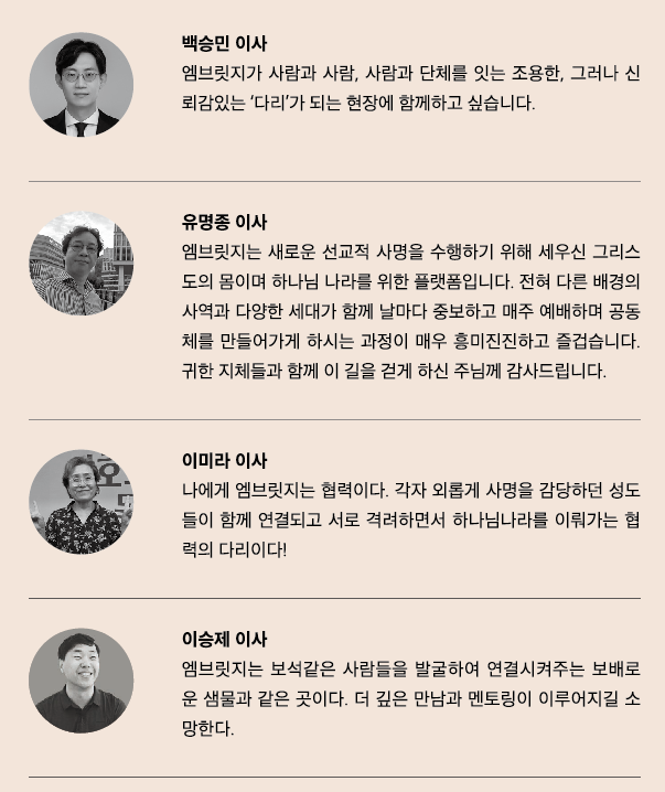 엠브릿지 사역에 함께해주셔서 감사드립니다. 인사말
